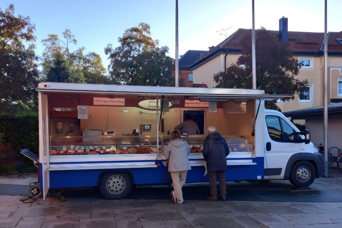 Wir sind auf dem Schlossberger Wochenmarkt mit unserem Verkaufswagen.